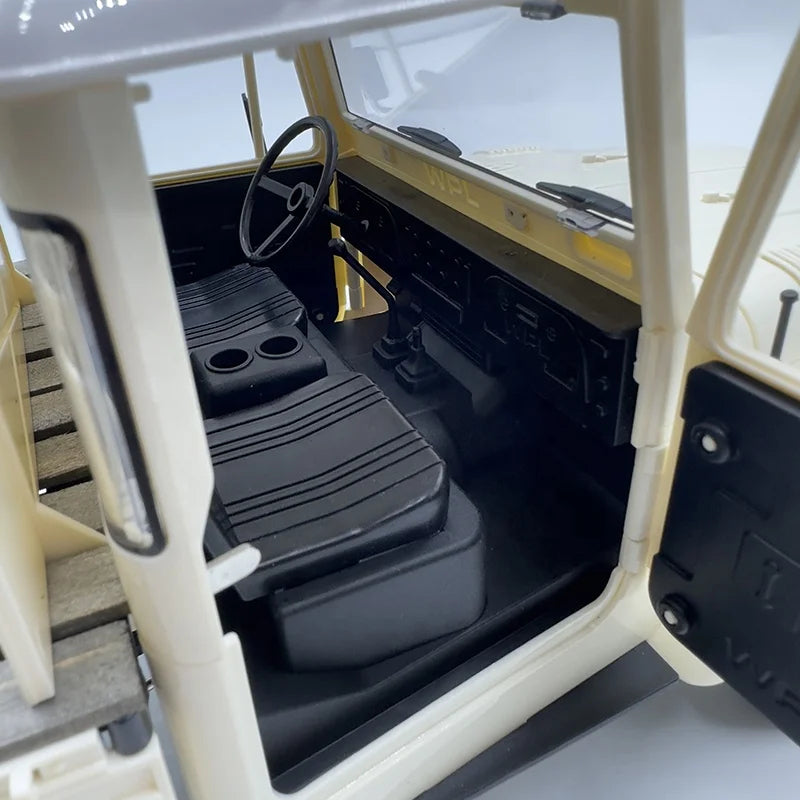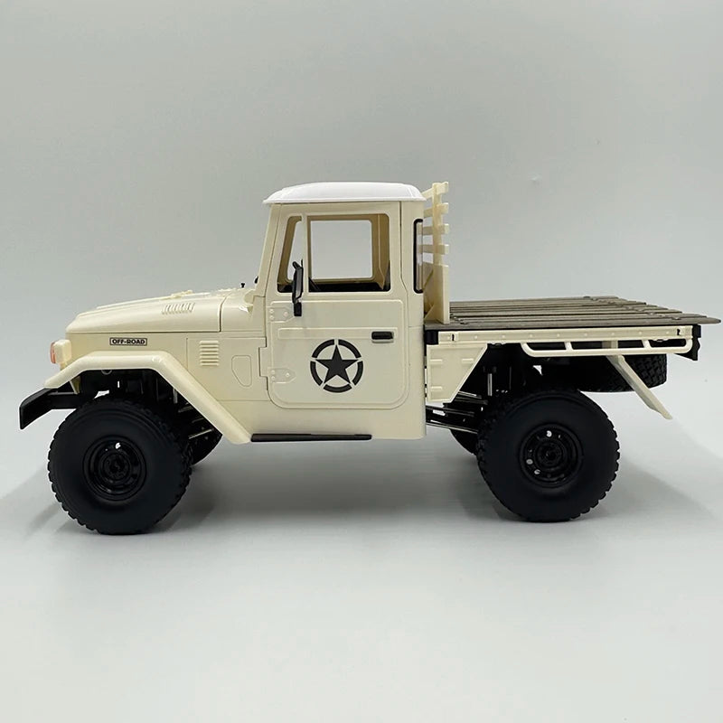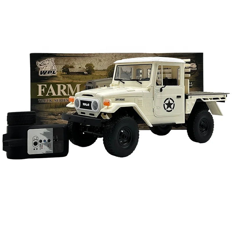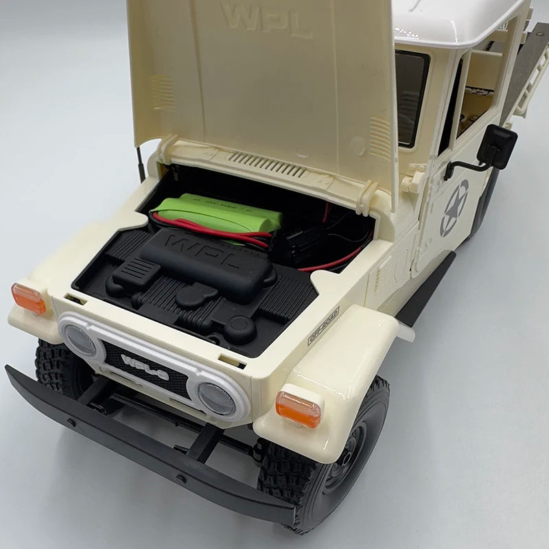 The WPL C-44 1/16 4WD Off-Road RC Climbing Car delivers rugged off-road performance with military styling. Powered by a 370 motor and a 7.4V 500mAh lithium battery, it achieves speeds up to 10 km/h with precision proportional control. Featuring a 4WD system, simulated suspension, USB charging, and durable ABS + metal construction, this RC crawler is designed for both beginner hobbyists and serious enthusiasts. With forward, backward, left/right turning, and proportional throttle, it handles rough terrain with ease while maintaining realistic looks