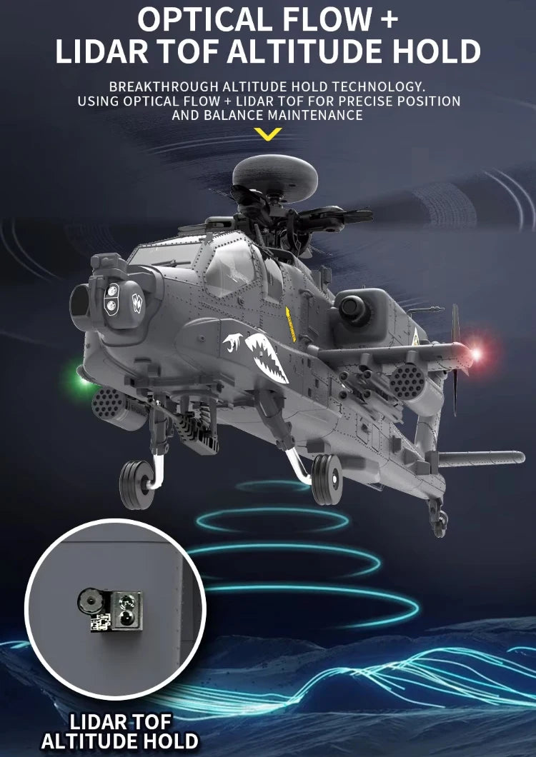 1. 1:32 Scale Apache AH-64D: High-fidelity exterior details, cool lighting, shock-absorbing landing gear.