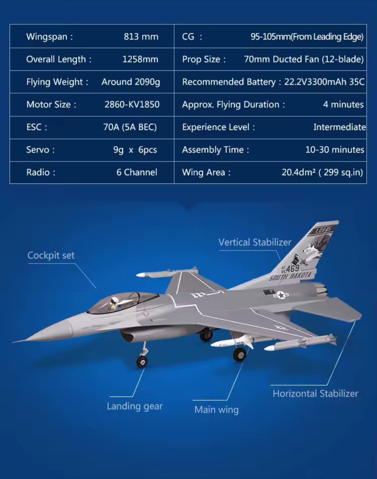 Description: FMS EDF Jet 70mm F‑16C Fighting Falcon, PNP