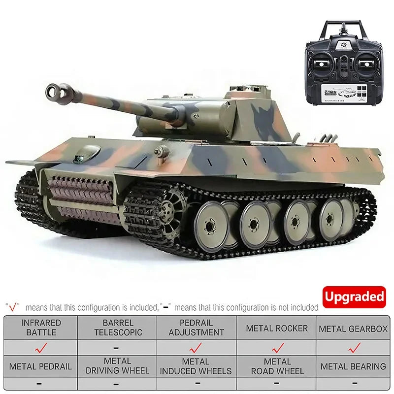 Ultimate Version: Metal rocker arms, Infrared combat system, Steel gearbox, Metal drive wheels, Metal idler wheels, Metal tracks, Metal road wheels, Full wheel bearings, Barrel retraction