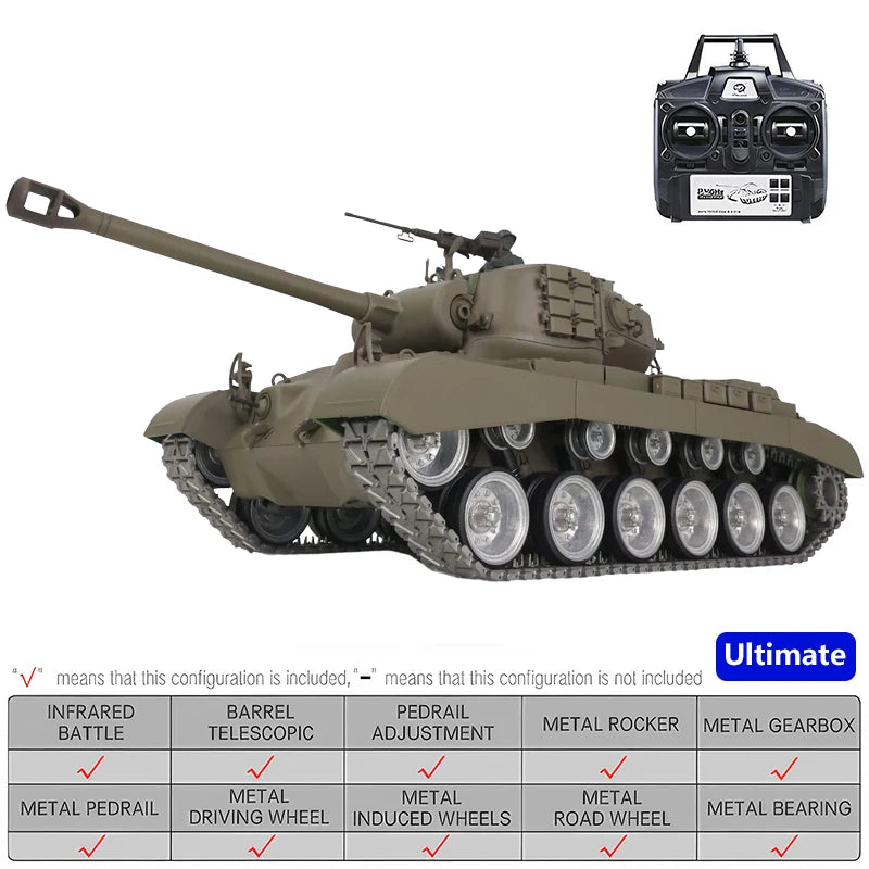 Heng Long 3838-1 U.S. M26 Pershing 1/16 2.4G InfraRed Battle BB Airsoft Smoke Lights Sound Steel Metal Crawler RC Tank Model Toy
