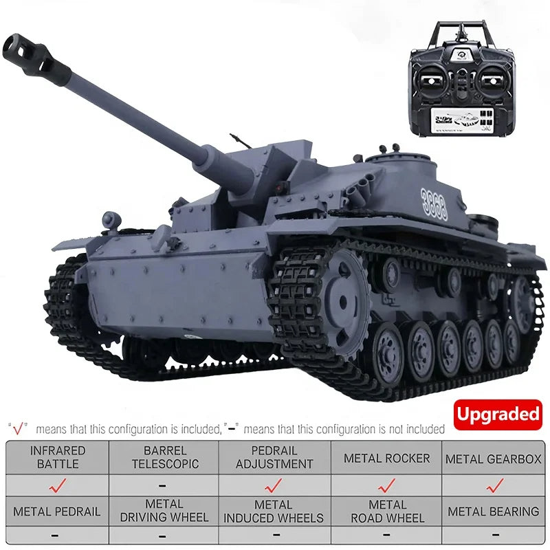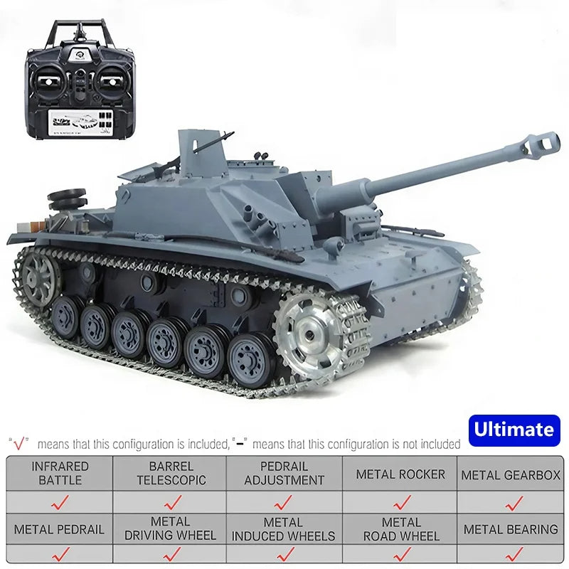 Heng Long 3868-1 1/16 German Stug III TK 7.0 RTR Upgrade Metal InfraRed Battle Military Crawler Radio Control RC Tank Hobby Toy