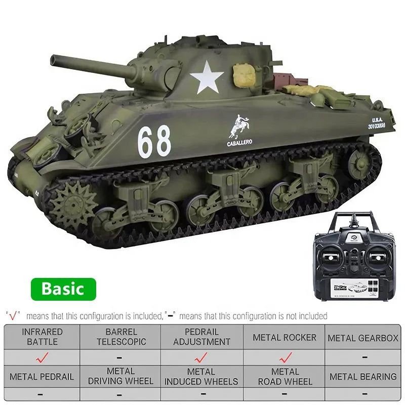- Ultimate Version: Infrared combat system, Steel gearbox, Metal drive wheel, Metal idler wheel, Metal tracks, Barrel retraction