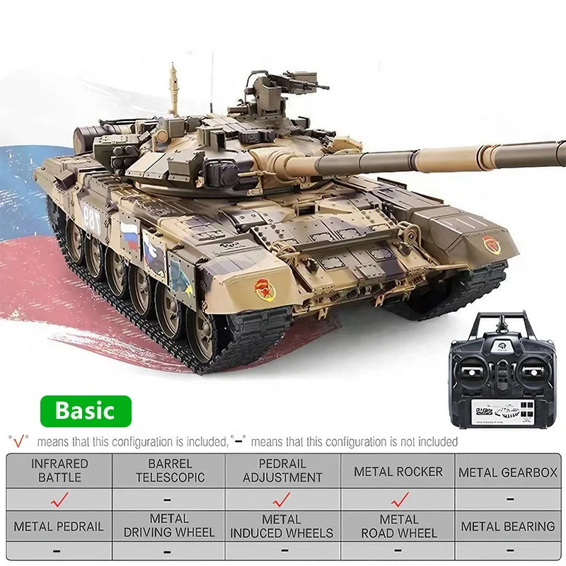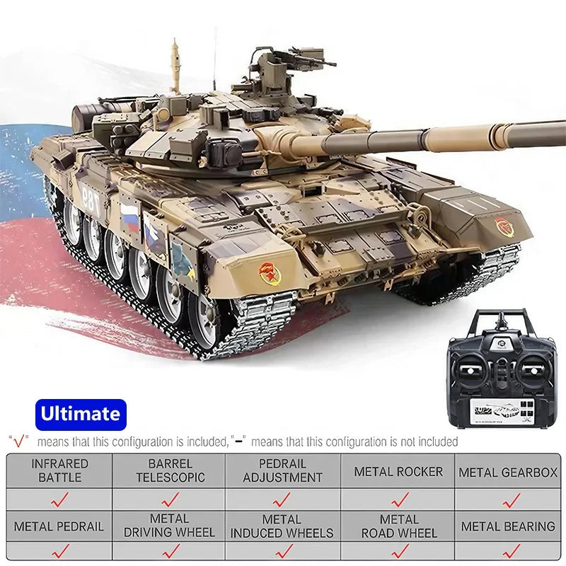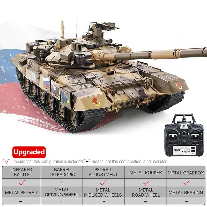Heng Long 3938-1 1/16 Russian T90 7.0 Radio Control Infrared Main Battle Tank Upgrade Metal Armored Military RC Tank Smoke Sound