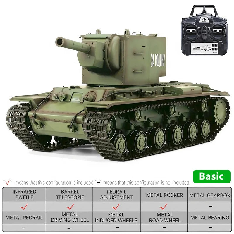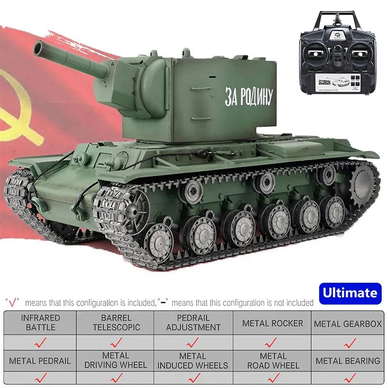 Heng Long 3949-1 Russia KV2 Heavy 1/16 2.4G InfraRed Battle BB Airsoft Smoke Lights Sound Steel Metal Crawler RC Tank Model Toy