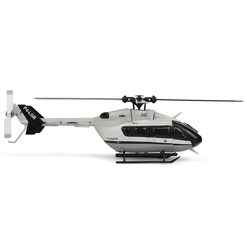 The K160 is a four-channel, quad-rotor RC helicopter engineered with composite materials and equipped with barometer-based altitude hold. Inspired by the EC-145 air rescue helicopter, it features a realistic exterior, brushless main motor, and 6-axis gyro stabilization for smooth, beginner-friendly flight. With one-key takeoff/landing, signal-loss auto-protection, USB charging, and over-10-minute flight duration, the K160 delivers a high-performance, durable flying experience both indoors and outdoors.